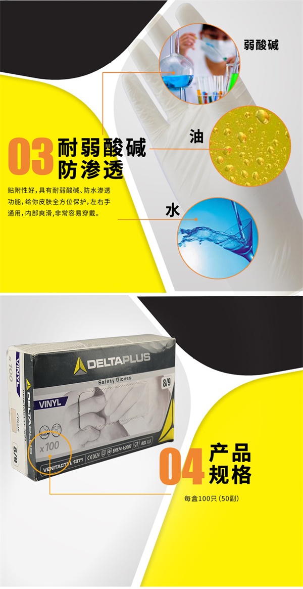 产品名称:代尔塔201371 带粉优质乙烯基一次性手套