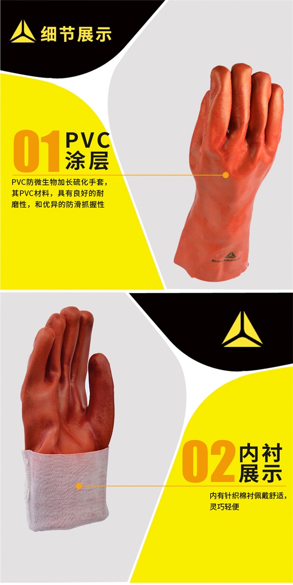 产品描述 :PVC涂层手套,棉制衬里,长度:35厘米。