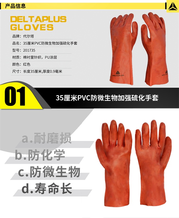只要您致电上海畅为,我们将以优惠的价格为您提供适合的代尔塔201735 加强硫化防微生物35厘米PVC手套套 产品!您成功下单后,在为您提供代尔塔201735 加强硫化防微生物35厘米PVC手套套产品的同时,上海畅为将为您提供防化手套等相关产品技术支持和售后服务,请您放心购买!