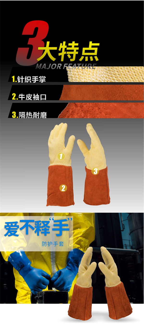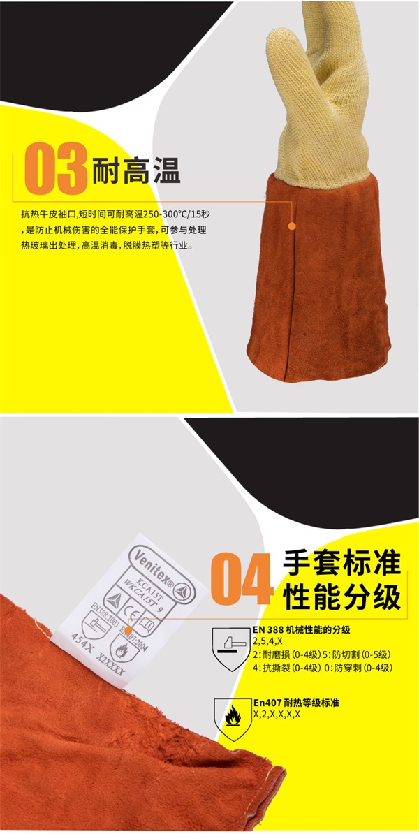 使用说明 :干燥环境中防止机械损坏的全能保护手套。当局部温度可能达到250°C - 300°C时,可以防止各种热风险。
