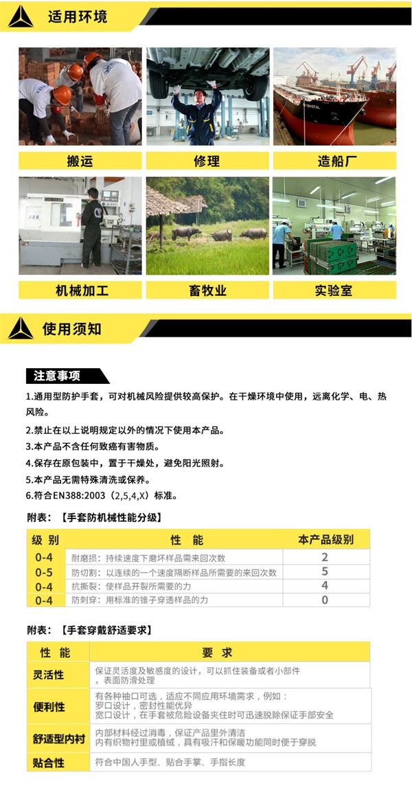 具有卓越的防割性,抗撕裂性和耐磨性。