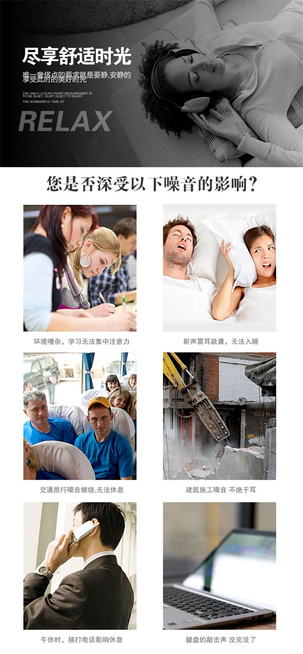 集中精神、提高学习和工作效率,高降噪值、清凉透气设计,最新防噪音产品。是您在家里、寝室、教室、乘车船飞机旅行、工厂、建筑工地、繁华市区等处免受噪声干扰的好帮手,是您健康新生活的好伙伴,也是您看F1比赛必备的哦。