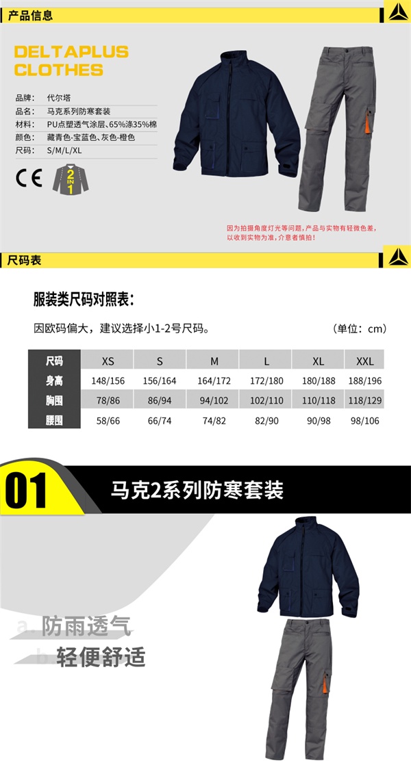 符合欧洲89/686指令要求,安全无害, 穿戴舒适,防水透气,柔韧性好,并符合欧洲EN340:2003标准总体要求: