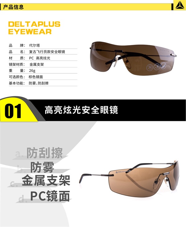 产品名称:代尔塔101137 复古飞行员款安全眼镜