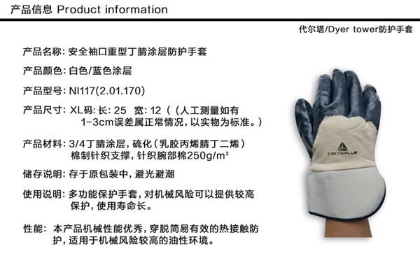 产品名称:代尔塔201170 安全袖口重型丁腈涂层手套