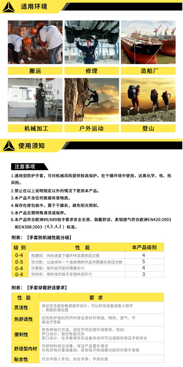 ·手掌和手指尖双层发泡丁腈涂层,有效增强内部针织手套内部的强化牢固性;