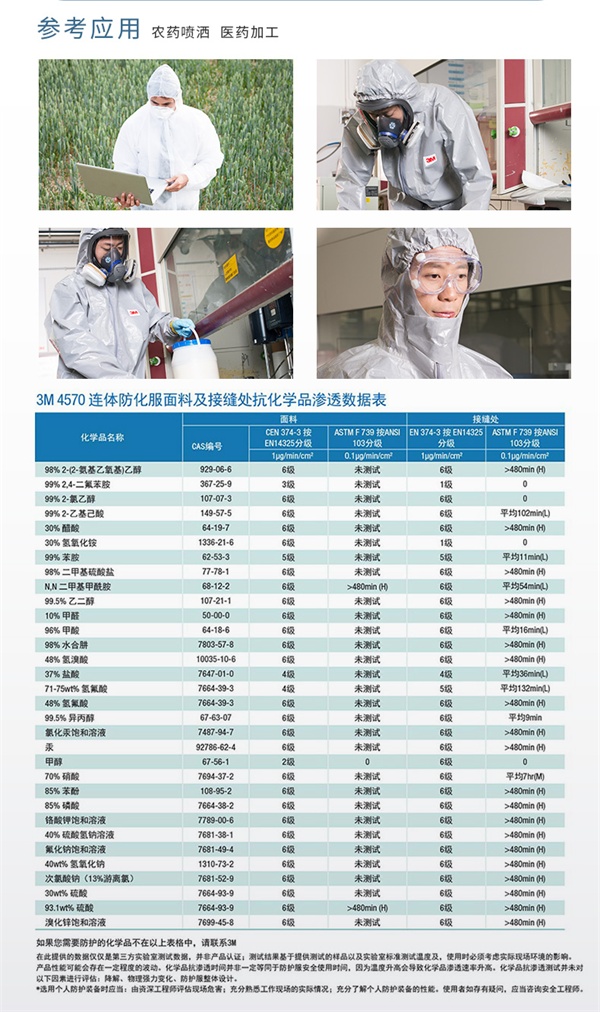 产品名称:3M 4570 防轻度化学液体飞溅连体防化服