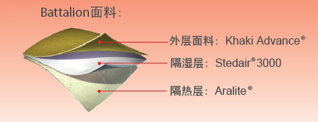 Advance® ----40% Nomex®和60% Kevlar。该面料采用网格状编织,7.0盎司每平方码,最外层经过严格防水及耐磨处理。